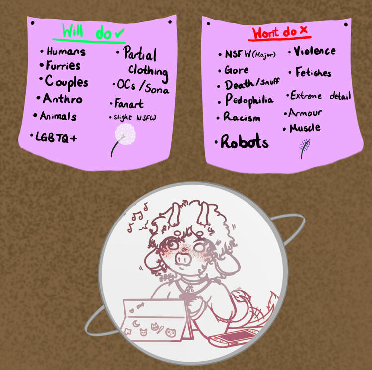 Welcome to Moonie's Corner Commissions, you'll be able to find my regular comms and information on my adopts! You can find my work at my socials below and contact me at my email!