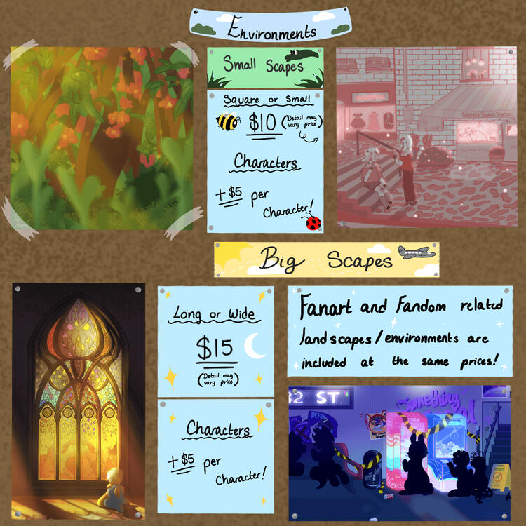 All the types of commissions I do, their prices, and examples to help you out! If you have questions about prices or need some assistance with picking a commission, you can contact me through my email at the home page!!! Please read TOS in the top menu before commissioning me, as it has important information about pricing, what I'm willing to draw, and how you are allowed to share my pieces. !!